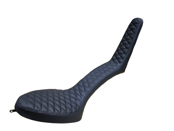 THIS IS A UNIVERSAL KING AND QUEEN SEAT FOR MOST RIGID FRAMES AND WELD ON HARD TAIL SECTIONS.  AVALIABLE IN HORIZONTAL AND DIAMOND PLEAT .  MADE WITH HIGH QUALITY 16 GUAGE PANS AND HIGH QUALITY LEATHER LIKE VINYL .  COMES WITH FRONT AND REAR MOUNTING TABS